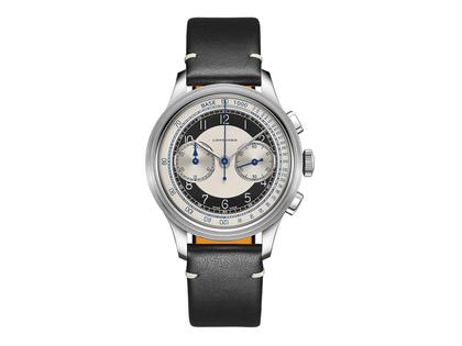 Longines Heritage Classic Tuxedo Chronograph Edelstahl silber schwarzes Lederband