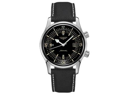 Heritage Legend Diver Watch, runde Herrenuhr, Automatik Kaliber L888 mit einer Gangreserve von 72 Stunden, Edelstahlgehäuse mit einem Durchmesser von 42 mm, Höhe 14 mm, schwarzes Zifferblatt mit Datumsanzeige auf 3 Uhr, strukturiertes Textilband mit Dornschließe, Saphirglas, Glasboden, 30 bar wasserdicht