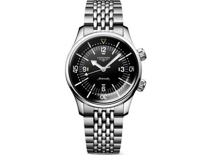Longines Legend Diver Chronometer Automatik Edelstahl 39mm schwarzes Zifferblatt Metallband