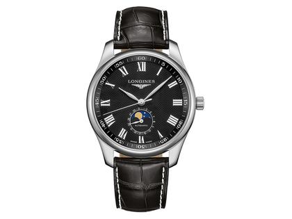 Longines Master Collection Automatik 42 mm Edelstahl schwarz römisch Lederband