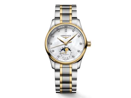 Longines Master Collection Automatik Edelstahl 34mm Perlmutt-Zifferblatt Brillant-Indizes Mondphase zweifarbiges Metallband