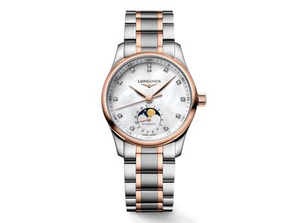 Longines Master Collection Automatik Edelstahl 34mm Perlmutt-Zifferblatt Brillant-Indizes Mondphase zweifarbiges Metallband