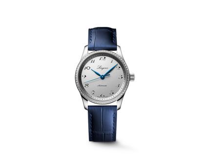 Longines Master Collection Automatik Edelstahl 34mm silberfarbenes Zifferblatt blaues Lederband
