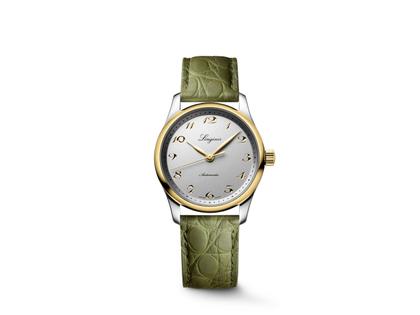 Die Longines Master Collection verkörpert perfekt das uhrmacherische Savoir-faire und die zeitlose Eleganz der Marke mit der geflügelten Sanduhr. Dieses Modell wird von dem Kaliber L888.5 angetrieben, das exklusiv bei Longines zum Einsatz kommt. Es ist mit einer Siliziumspiralfeder und weiteren innovativen Komponenten ausgestattet. Dieses mechanische Uhrwerk mit Automatikaufzug, das durch den transparenten Gehäuseboden zu bewundern ist, verfügt über eine Gangreserve von bis zu 72 Stunden. Das bis 3 bar (30 m) wasserdichte Bicolor-Gehäuse mit 34 mm Durchmesser wird von einem 18-karätigen Gelbgold Cap und einer gleichfarbigen Krone veredelt. Auf dem sandgestrahlten, silberfarbenen Zifferblatt markieren zwölf gravierte, gelbgoldfarbene arabische Ziffern die Stunden, über denen gleichfarbige Blattzeiger ihre Runden drehen. Die Minuterie befindet sich auf dem Höhenring. Diese Uhr wird an einem grünen Lederarmband mit „Soft-Touch"-Finish getragen. Es verfügt über eine Dreifach-Sicherheitsfaltschließe mit Drückern.
