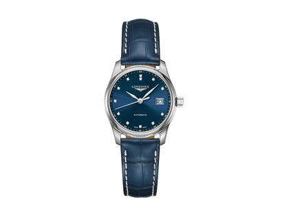 Longines Master Collection Automatik 29 mm Edelstahl blau Diamanten Index Lederband