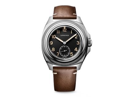Longines Pilot Majetek Automatik Edelstahl schwarz Lederband braun