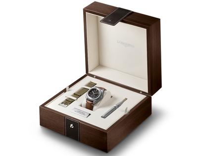 Longines Pilot Majetek Box Edition Automatik Edelstahl schwarz Lederband braun