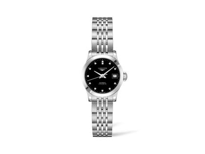 Longines Record Chronometer Automatik 26 mm Edelstahl schwarz Diamanten Metallband