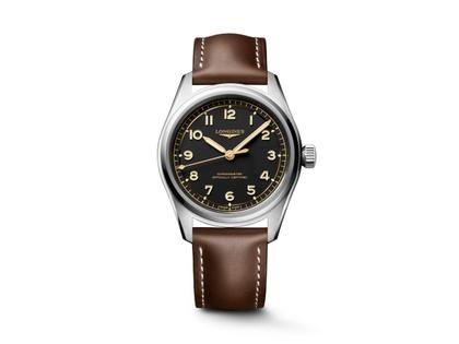 Longines Spirit Pilot Automatik Edelstahl 39mm schwarzes Zifferblatt braunes Lederband