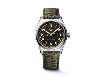 Longines Spirit Pilot Automatik Edelstahl 39mm schwarzes Zifferblatt grünes Textilband