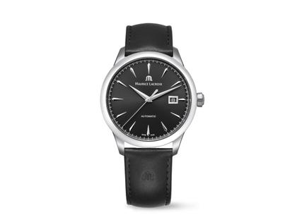 Maurice Lacroix 1975 Automatik Edelstahl 40mm schwarzes Zifferblatt schwarzes Lederband
