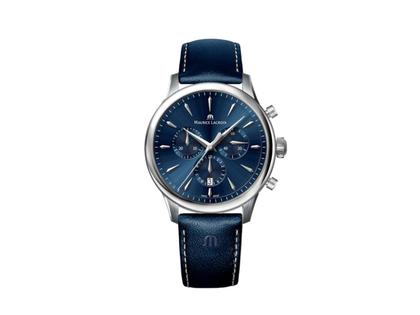 Maurice Lacroix 1975 Chronograph Quarz Edelstahl 39mm blaues Zifferblatt blaues Lederband