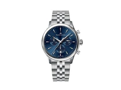 Maurice Lacroix 1975 Chronograph Quarz Edelstahl 39mm blaues Zifferblatt Metallband