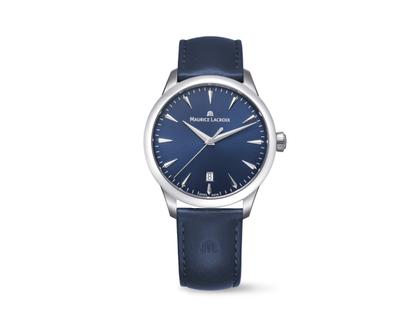 Maurice Lacroix 1975 Quarz Edelstahl 39mm blaues Zifferblatt blaues Lederband
