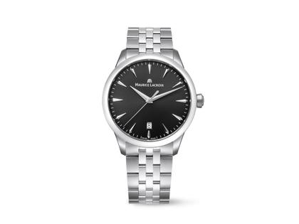 Maurice Lacroix 1975 Quarz Edelstahl 39mm schwarzes Zifferblatt Metallband