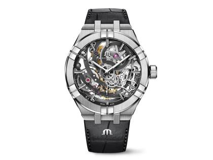 Mit diesem Modell mit mechanischem Kaliber erweitert Maurice Lacroix zur Baselworld 2018 seine bisher ausschließlich mit Quarzwerken ausgestattet Aikon-Linie. Skelettierte Zeitmesser stellt Maurice Lacroix bereits seit 25 Jahren her und gehört damit zu den ersten Marken, die diesen Stil erkundeten. Die Aikon Automatic Skeleton bleibt dem treu und vereint dabei zeitgemäßes Design und moderne Eigenschaften. Seine Skelettierung folgt einem ganz neuen Muster, das speziell für diesen Zeitmesser entworfen wurde. Außerdem verfügt die Aikon Automatic Skeleton erstmals auch über das aus der Eliros Kollektion bekannte Schnellbandwechselsystem.