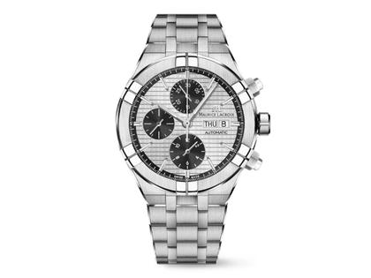 Maurice Lacroix Aikon Chronograph Automatik, silberfarbenes Zifferblatt mit schwarzen Totalisatoren