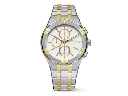 Maurice Lacroix Aikon Quarz Chronograph Duotone Edelstahl 42mm weißes Zifferblatt zweifarbiges Metallband