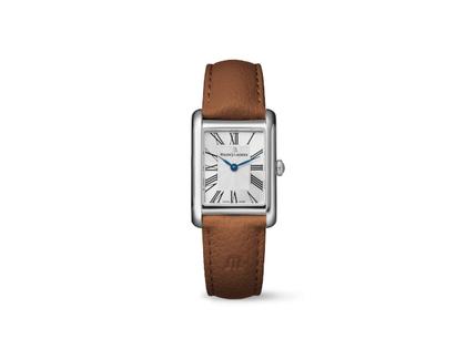 Maurice Lacroix Fiaba Square Quarz Edelstahl 24x34mm silbernes Zifferblatt braunes Lederband