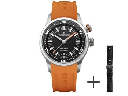 Maurice Lacroix Pontos S Diver Automatik Edelstahl 42 mm schwarz Kautschukband orange