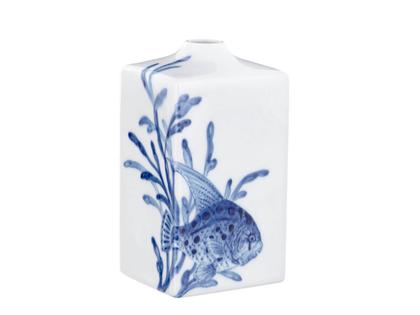 Die 15,5 cm hohe "MEISSEN® Cosmopolitan Blue Treasures Vase, Fisch" bringt sommerlich-maritimes Flair in Ihr interior design. Die auf den handbemalten Meissener Porzellanen detailreich dargestellten Hummer, Seepferdchen, Muscheln oder Fische schaffen eine Unterwasserwelt-Dekoration voller Faszination, Romantik sowie Sehnsucht. In Unterglasurmalerei wird die pure Form "MEISSEN® Cosmopolitan" handbemalt und verbindet somit traditionelles Kunsthandwerk mit zeitgenössischer Dekor- und Formensprache auf eindrucksvolle Weise. Die "MEISSEN® Cosmopolitan Blue Treasures Vase, Fisch" verbindet das Gefühl einer leichten Meeresbrise mit dem Anmut höchster Porzellanqualität und entwickelt als Dekoration eine dem Rauschen der Wellen ähnelnde Atmosphäre in Ihrem interior design.