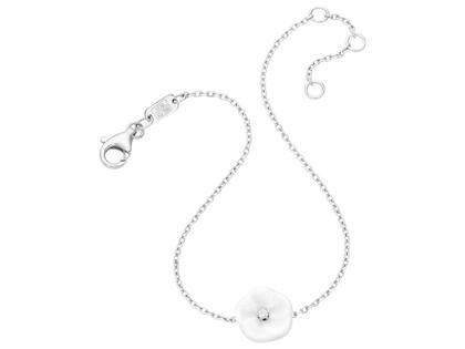 Armband, Meissener Porzellan® mit Blütenstempel 1 Brillant TW vsi mittig in Blüte, Blüte und Armband 750/- Weißgold, Ankerkette mit Karabinerverschluss, Blüte S 10mm