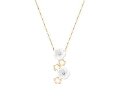 Meissen Blossom Blütencollier 5 Blüten Gelbgold mit Brillanten und Meissen Porzellan