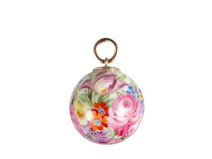 Kugelanhänger Blumenwiese bunt aus Meissener Porzellan® mit Öse aus 750/- Roségold, Durchmesser 22 mm