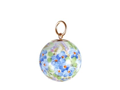 Kugelanhänger Vergissmeinnicht blau aus Meissener Porzellan® mit Öse aus 750/- Gelbgold, Durchmesser 22 mm
