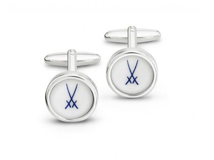 Meissen Manschettenknöpfe "Schwerter Kobaltblau" Silber weiß