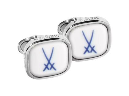 Meissen Manschettenknöpfe "Schwerter Kobaltblau" Silber weiß