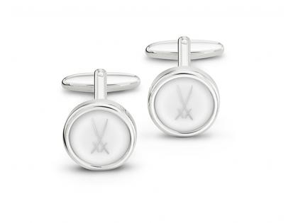 Meissen Manschettenknöpfe "Schwerter Platin" Silber weiß