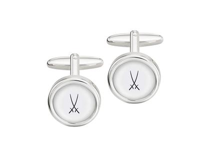 Meissen Manschettenknöpfe "Schwerter Schwarz" Silber weiß