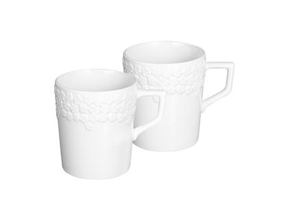 Bis heute gehören die "Schneeballblüten" von Johann Joachim Kaendler zu den herausragenden künstlerischen Arbeiten der Porzellanmanufaktur Meissen. 1739 auf Geheiß von König August III für seine Gemahlin Maria Josepha von Österreich geschaffen, galten sie bereits kurz nach ihrer Entstehung als Ikonen der Porzellankunst. Für "Royal Blossom" wurden eben jene ehrwürdigen Blüten als Relief neu interpretiert. Sie verleihen dem puristischen Weißgeschirr der Serviceform "N° 41" eine filigrane Haptik und barocke Eleganz, deren Feinheit und Detailreichtum die Akkuratesse des Meissener Kunsthandwerks bezeugen. Fortwährend der romantischen Entstehung der "Schneeballblüten" verschrieben, vereint dieses Set zwei Kaffeebecher zu einem innigen café à deux.
