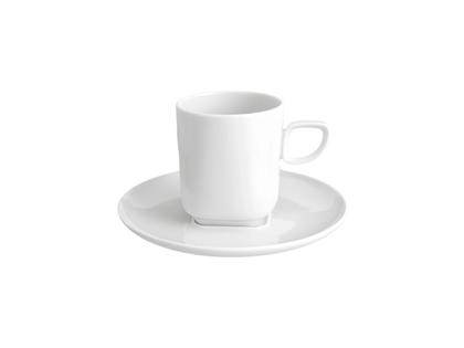 Kaffeetasse mit Untertasse aus weißem Meissener Porzellan®, Form "Nova", Teller Durchmesser 16,0 cm, Höhe 9,0 cm, Volumen 0,2L