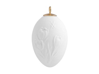Meissener Porzellan®, Miniatur-Ei Relief "Krokusse" Porzellan weiß, bisquit, Höhe 5,5 cm, Anhängeroese vergoldet