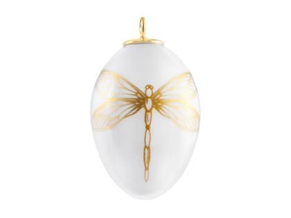 Meissener Porzellan®, Miniatur-Ei mit goldenem Motiv "Libelle" Porzellan weiß, Breite 3,0 cm, Höhe 4,3 cm, Anhängeröse vergoldet