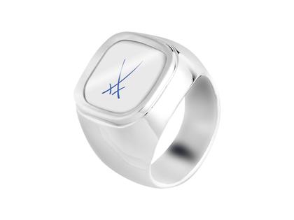 Ring mit Schwerter in Kobaltblau, 925/- Silber rhodiniert, 1 handbemaltes Plättchen aus Meissener Porzellan 1,4 x 1,4 cm