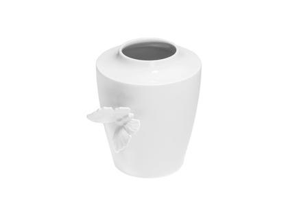 Als hätte er sich eben niedergelassen, die Flügel noch in leichter Bewegung, sitzt der Schmetterling auf dem Bauch der Vase. Ein erster Frühlingsbote, der heitere Leichtigkeit verströmt. In akkurater Bossierarbeit entstehen der Schmetterlingskörper, werden die einzelnen Regionen, Adern und Zellen der Flügel herausgearbeitet und diese schließlich angesetzt. Im Kontrast zu der detailreichen filigranen Verzierung steht die moderne puristische Vasenform mit bauchigem Körper und ovaler Öffnung. Ein lebhaftes Zusammenspiel traditionellen Kunsthandwerks und zeitgenössischem Design, festgehalten in feinstem Porzellan.