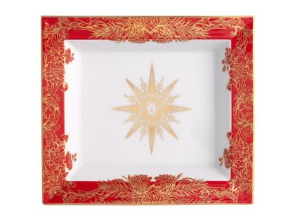 Vide-Poche Schale groß aus Meissener Porzellan®, Muster "Meissen Christmas Star" in rot, Maße 21,0 x 18,5 x 3,5 cm