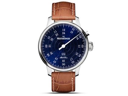 MeisterSinger Bell Hora Edelstahl blaues Zifferblatt braunes Lederband