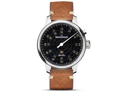 Der einzelne Stundenzeiger der MeisterSinger Uhren vermittelt das Gefühl der Entschleunigung. Dafür steht auch das Zeichen über dem MeisterSinger Schriftzug - die umgedrehte Fermate, das Ruhezeichen der Notenschrift.