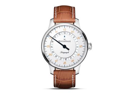 MeisterSinger Perigraph 38 Automatik Edelstahl weiß Lederband braun
