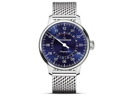 MeisterSinger Perigraph blau, 43mm, Milanaiseband klassisch
