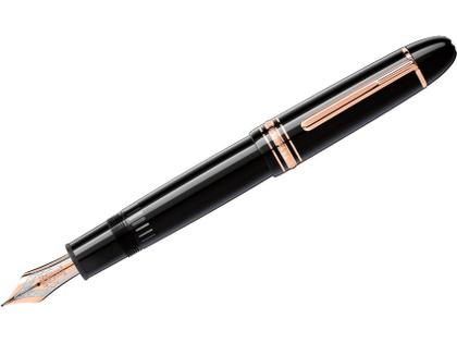 Der Klassiker: Unterschriften Füllhalter Meisterstück 149, Kolbenfüllhalter, Edelharz schwarz, weißer Montblanc Stern, Clip und Ringe rotvergoldet,