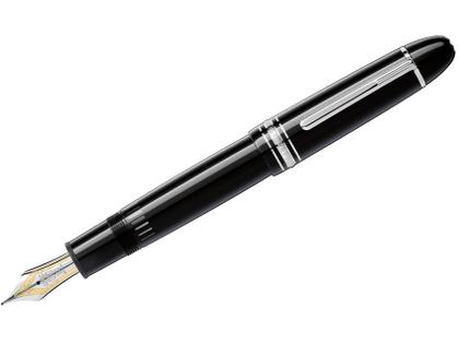 Der Klassiker: Unterschriften Füllhalter Meisterstück 149, Kolbenfüllhalter, Edelharz schwarz, weißer Montblanc Stern, Clip und Ringe platiniert,