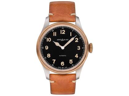 Die Montblanc 1858 Automatik Dual Time Bronzeuhr wird durch ihr Trageverhalten individualisiert. Das Gehäusematerial ist eine Legierung aus Kupfer und Zinn. Stabil gegen extreme Witterungsbedingungen, erhält jedoch im Zuge der Nutzung sowie durch Umwelteinflüsse mit der Zeit eine charakteristische Patina.