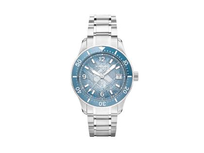 Das graue Eisbergmuster der Montblanc 1858 Iced Sea Automatic Date 0 Oxygen ist von dem Mer de Glace inspiriert, dem Hauptgletscher des Mont-Blanc-Massivs. Seine Textur wurde mithilfe einer nahezu in Vergessenheit geratenen Technik erhalten, dem „Gratté-Boisé“. Die Uhr verfügt über eine einseitig drehbare Lünette mit Keramikeinlage, einen gravierten Gehäuseboden und ein austauschbares Edelstahlarmband mit einer hochwertigen Faltschließe. Die Uhr erfüllt die Anforderungen der ISO 6425 Norm für Taucheruhren und ist wasserdicht bis 300 Meter.