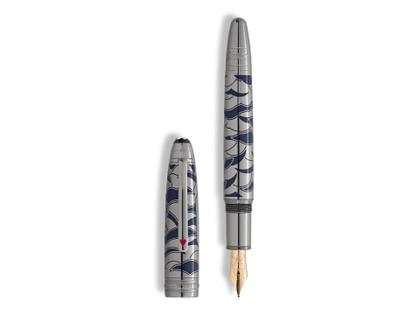 Auf dem Kappenkopf ist die Zeitachse der Reise eingraviert – 36 Tage von Yokohama nach London, insgesamt 80 Tage voller Abenteuer. Den krönenden Abschluss bildet die handgefertigte 18K-Goldfeder, die mit den Daten 14/11 und 21/12 versehen ist – eine Erinnerung an den Tag, an dem Mr. Fogg Yokohama verließ (14. November), und das entscheidende Datum, an dem er seine Wette gewinnen musste (21. Dezember). Zudem schmückt die Feder die Gravur eines Heißluftballons – eine Anspielung auf den ersten Roman von Jules Verne.