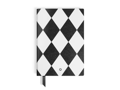 Notizbuch mit schwarz-weißem Ledereinband und linierten Seiten